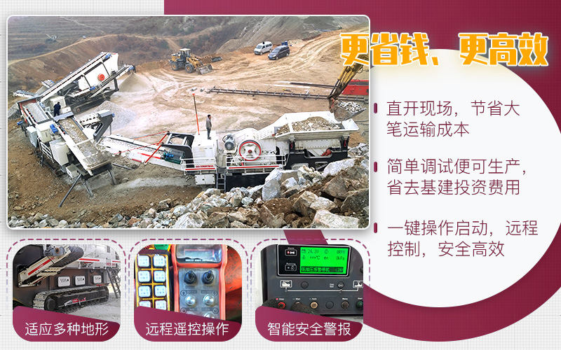 大型磕石制砂一體機(jī)是通過輪胎式或履帶式車架與鄂破、反擊破、錘破、圓錐破、制砂機(jī)、振動(dòng)篩靈活配置,整體搭配緊湊,油電兩用,配有PLC智能電控箱,可遠(yuǎn)程控制,根據(jù)客戶的實(shí)際生產(chǎn)狀況不同,配置方案多種多樣,比如以下客戶的方案。