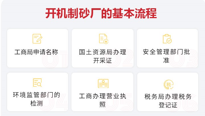 工商局申請名稱→國土資源局辦理開采證→安全管理部門批準(zhǔn)→環(huán)境監(jiān)管部門的檢測→工商辦理營業(yè)執(zhí)照→稅務(wù)局辦理稅務(wù)登記證。