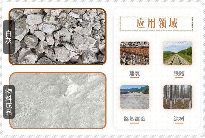 天然的白灰物料應(yīng)用范圍受限,需進(jìn)行加工后,才能擴(kuò)大利用率及范圍。如將白灰放入雷蒙磨粉機(jī)內(nèi)研磨后,則價(jià)值得到廣泛提高。